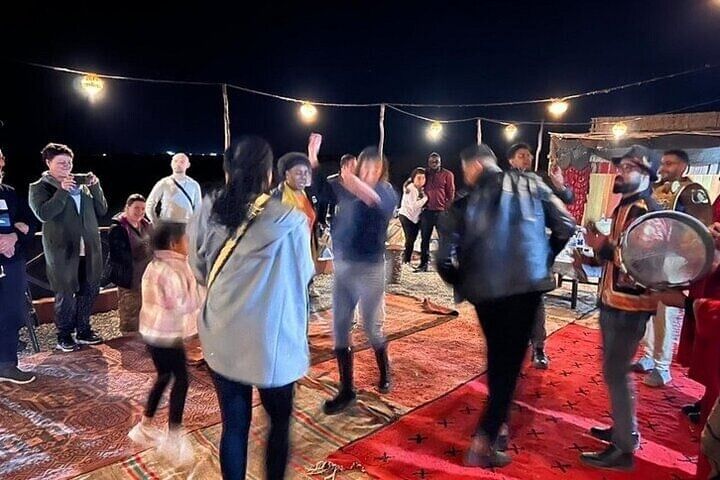 Experience an enchanting evening in the Agafay Desert with a thrilling quad bike ride and a serene camel excursion. Immerse yourself in Moroccan culture with a captivating dinner show featuring traditional music and dance performances.