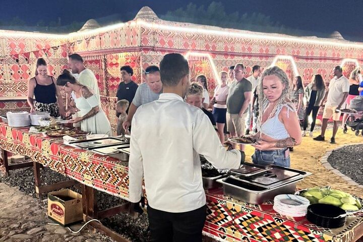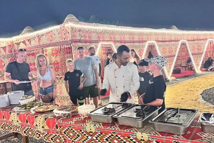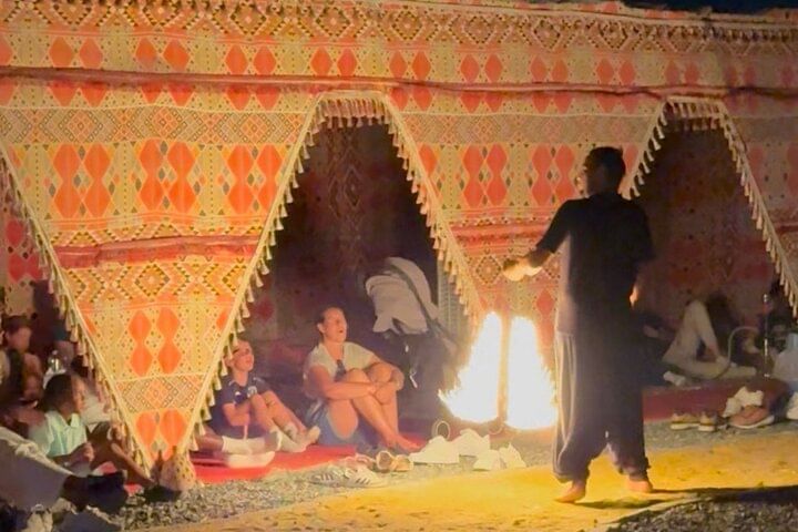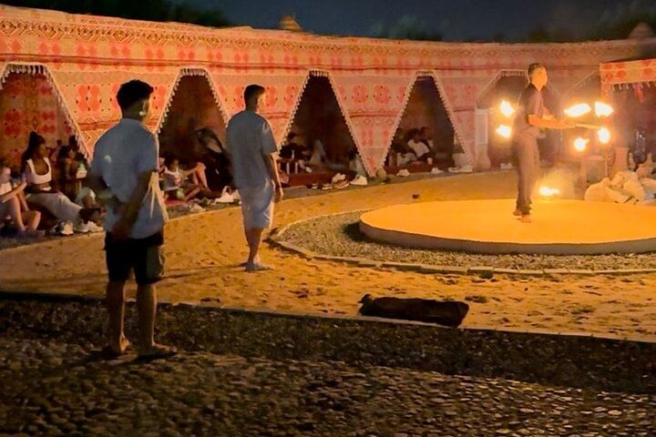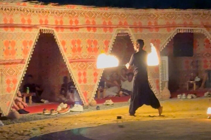 This desert experience sets itself apart by combining culture, entertainment, and artistry in one journey. Guests are introduced to authentic Bedouin traditions, with a warm welcome, traditional dinner, and engaging live performances that reflect the spirit of the desert.