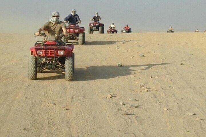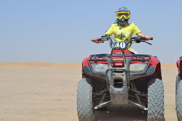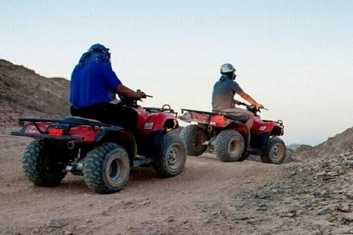 Embark on an unforgettable journey through the heart of the Sinai with this all-in-one desert adventure in Sharm El Sheikh: the ATV Quad & Blue Hole Canyon Tour by Bus, complete with a Camel Ride and BBQ Lunch.