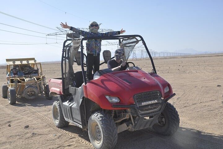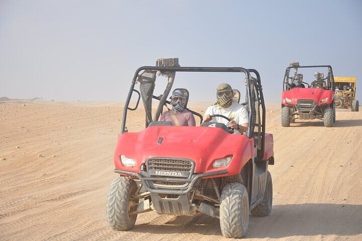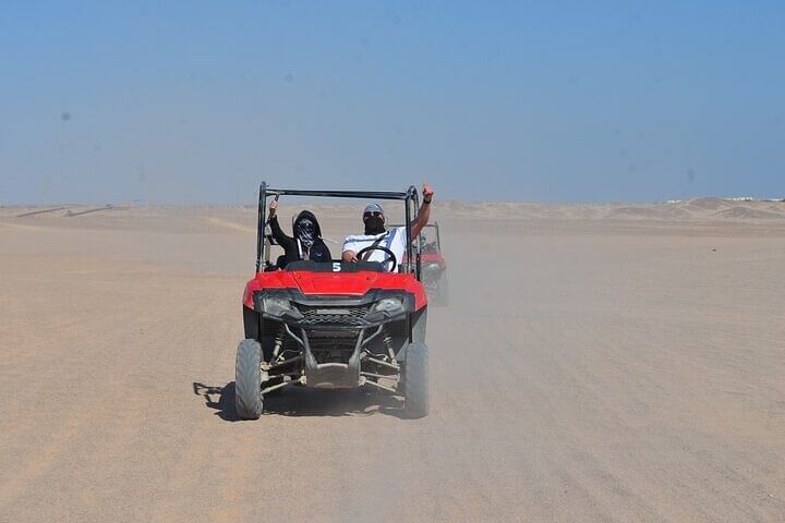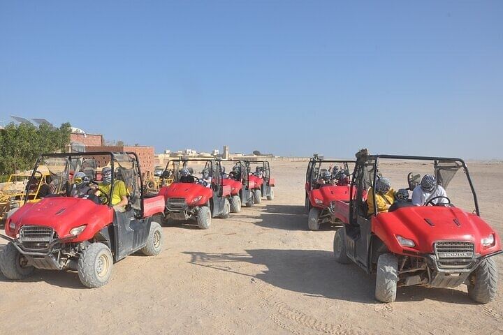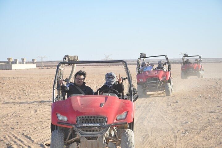 Get ready for an exhilarating experience with the Buggy Safari in the Red Sea Desert, featuring the Echo caves in Sharm El Sheikh. This high-octane adventure propels you through the breathtaking desert landscape.
