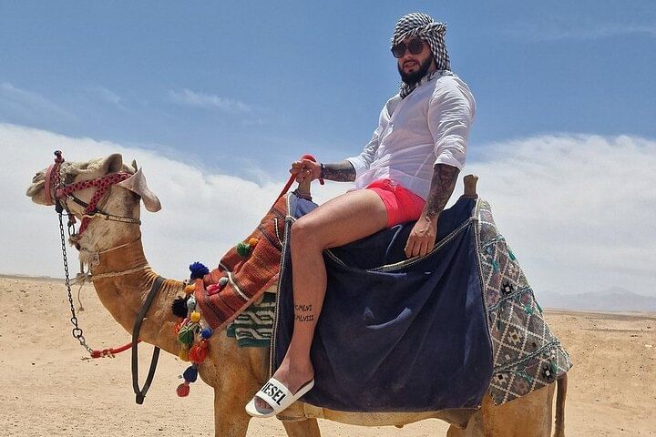 This camel riding experience in Hurghada stands out as one of the most authentic ways to connect with Egypt’s desert culture. Unlike standard tourist rides, it combines genuine Bedouin traditions with modern comfort and safety, giving travelers a true taste of local life. Ride across golden dunes on well-trained camels guided by professional Bedouin handlers who share fascinating insights into their heritage. Even first-time riders will feel at ease with pre-ride coaching and friendly support throughout the journey. As you sway gently through the desert, enjoy panoramic views, crisp air, and the peaceful rhythm of nature. Helmets are provided, and all safety measures are in place for a worry-free experience. Perfect for families, couples, and culture seekers, this adventure offers a unique balance of relaxation, authenticity, and discovery. Experience the timeless beauty of the Egyptian desert and create unforgettable memories on this one-of-a-kind camel ride in Hurghada.