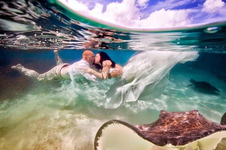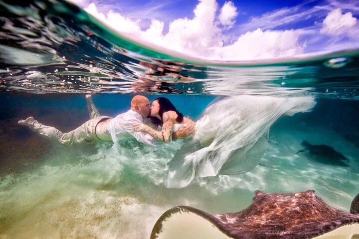 Create lasting memories with our Enchanting Underwater Wedding Ceremony in Hurghada. This unique experience allows couples to exchange vows beneath the waves, surrounded by the stunning beauty of the Red Sea. After boarding a specially equipped boat and receiving a brief orientation from experienced dive instructors, you'll descend into clear, turquoise waters to an enchanting underwater altar. Professional photographers will capture every magical moment. Celebrate with a romantic toast on the boat and enjoy the breathtaking sea views as you cruise back to shore. Following the celebration, you'll be comfortably transported back to your hotel. Perfect for adventurous and romantic couples.