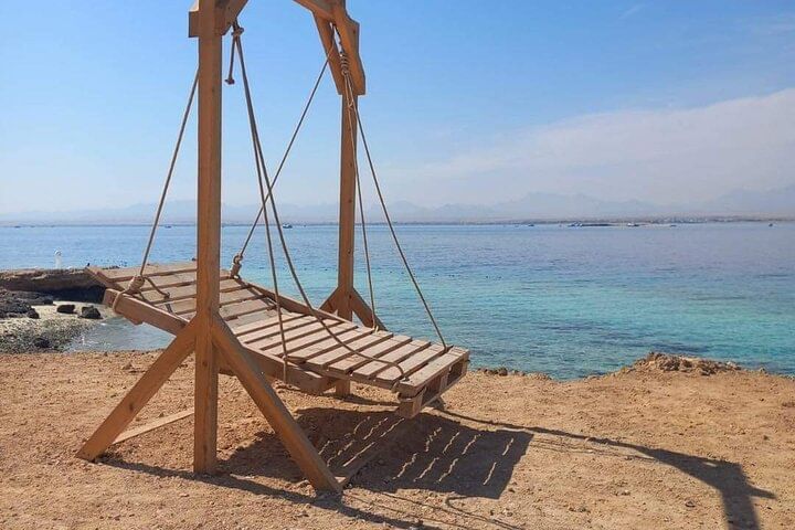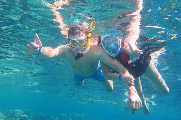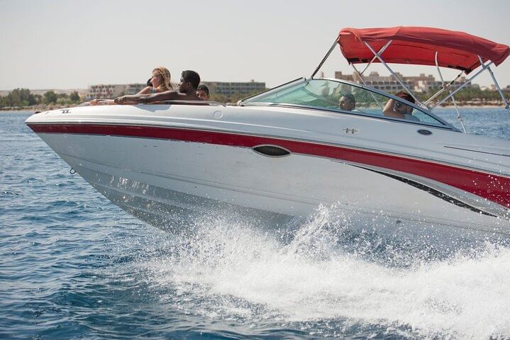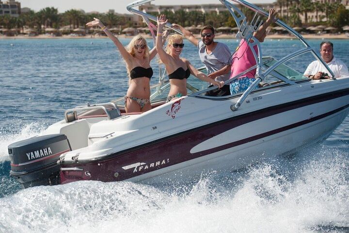 Experience an unforgettable day with convenient hotel pick-up and drop-off in an air-conditioned vehicle. Begin your private 8-hour speedboat adventure through the crystal-clear waters of Hurghada. Swim alongside dolphins at Dolphin House, then dive into two guided snorkeling sessions to discover vibrant coral reefs and colorful marine life—snorkeling gear included.