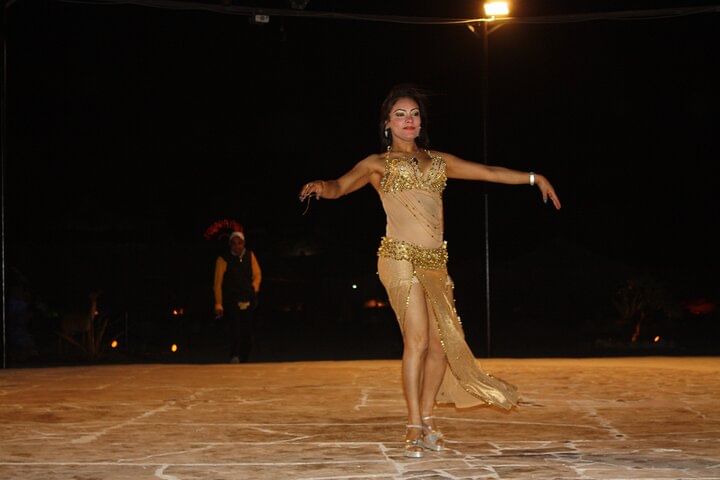 After your ride, instead of heading straight back to your hotel, you’ll be welcomed into the heart of Bedouin life with a traditional dinner under the open desert sky. The evening’s highlight is a lively belly dance and Bedouin performance, turning the night into a vibrant celebration of local heritage.