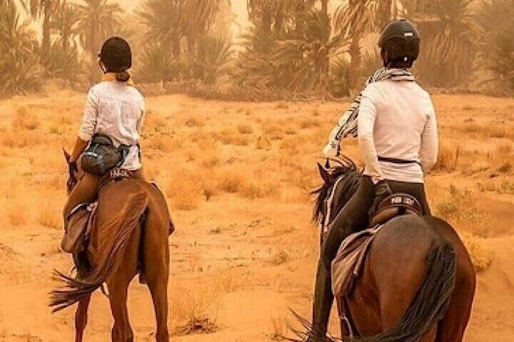 This tour is more than a horseback ride—it’s a cultural retreat just minutes from Marrakech. Instead of a typical city tour, explore the peaceful Palmeraie oasis on horseback, surrounded by palm groves and stunning views of the Atlas Mountains. Begin with traditional mint tea at a nearby eco-lodge, then ride through quiet Berber villages that offer a rare glimpse into authentic Moroccan life. With safety gear provided, the experience is suited for all riding levels. Blending nature, culture, and gentle adventure, this tour offers an immersive and memorable way to connect with Morocco’s desert charm.