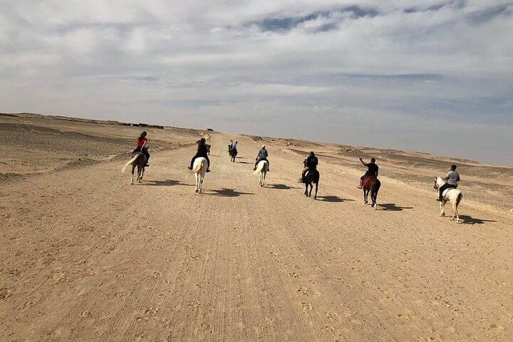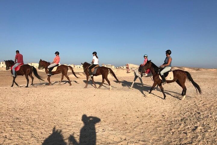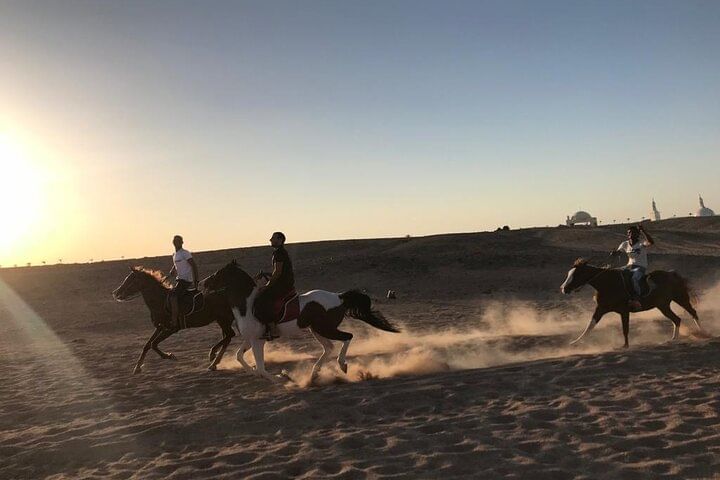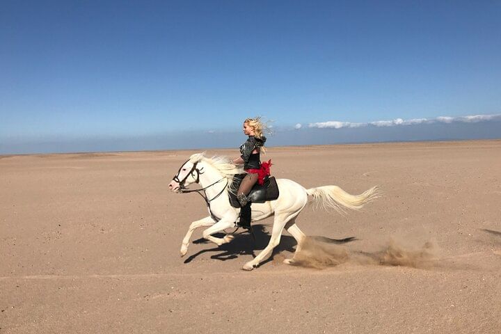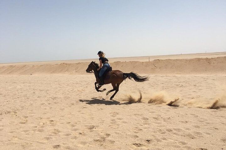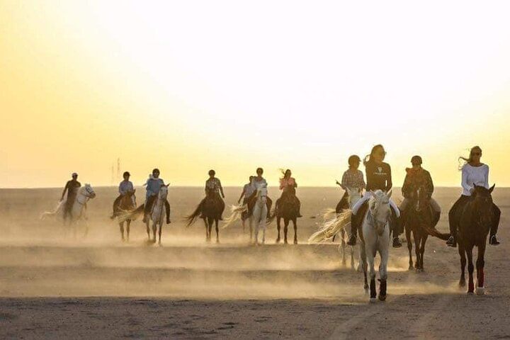 Embark on an unforgettable adventure in Hurghada that combines the excitement of horseback riding, the awe of a semi-submarine journey, and the thrill of parachuting. Start your experience by riding through the vast desert on horseback. Feel the wind rush through your hair and the steady rhythm of the horse's hooves as you traverse the golden dunes, taking in sweeping views of both the desert and the Red Sea coastline.