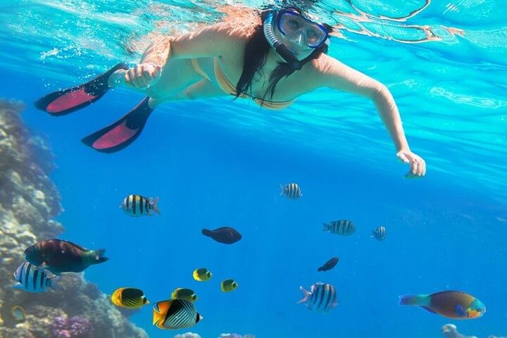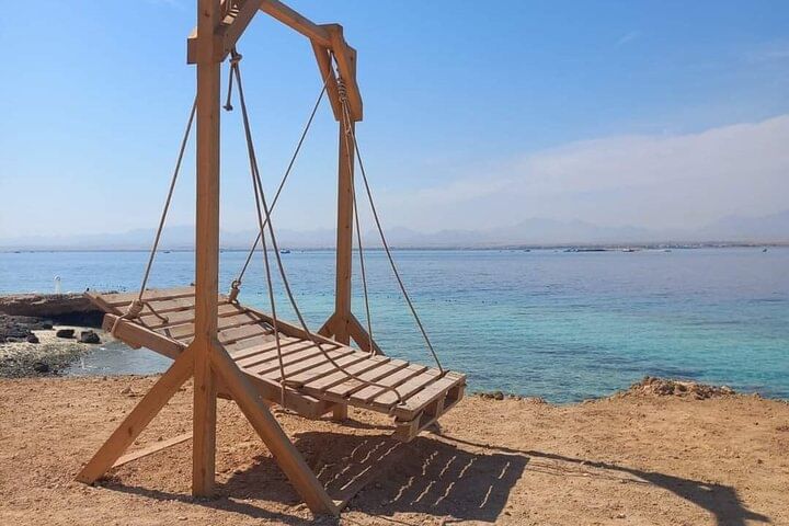 Your destination? The idyllic Magawish Island—a serene slice of coastal beauty with soft sands and shallow turquoise waters. On the way, dive into the sea for a guided snorkeling session and explore the vibrant coral reefs and colorful fish that make the Red Sea one of the world’s top snorkeling spots.