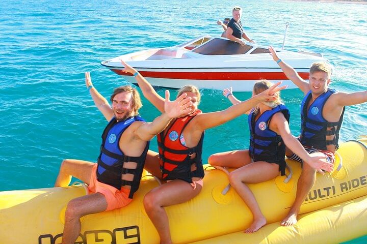 Join us for the ultimate desert adventure in Sharm El Sheikh, featuring an exciting mix of land and water activities. Start by conquering the sandy dunes on an ATV, then enjoy a scenic camel ride. Experience the thrill of parasailing, followed by an exploration of the underwater world with a banana boat and glass bottom boat. Take a moment to enjoy traditional Bedouin tea and a delicious lunch, all while soaking in the breathtaking views. This adventure is perfect for everyone, from those looking for thrills to those who appreciate nature.