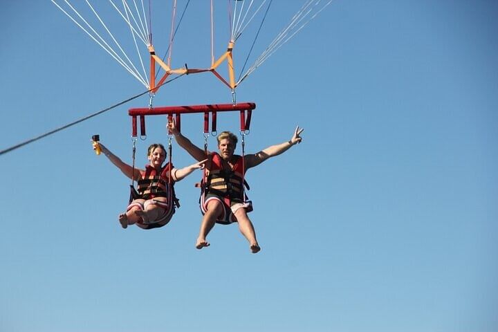 This Orange Bay boat trip blends relaxation, adventure, and postcard-worthy scenery into one seamless day. What sets it apart is the generous two-hour stay on Orange Bay’s powdery white sands—giving you time to unwind, swim, or sip cocktails at beachfront bars. Add to that two guided snorkeling stops at colorful coral reefs, a freshly prepared buffet lunch, and the adrenaline rush of water sports and optional parasailing. With hotel pickup and drop-off included, this all-in-one excursion offers one of the most effortless and exciting ways to enjoy Hurghada’s Red Sea beauty.