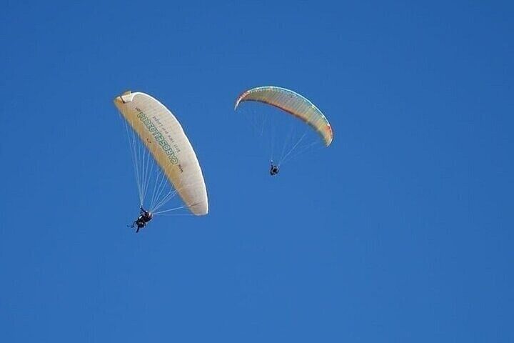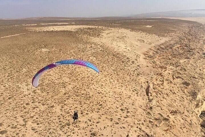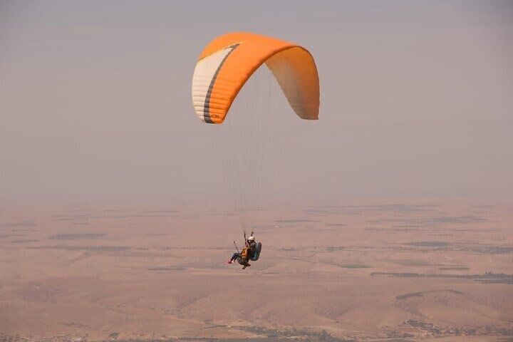 Experience the thrill of paragliding over the Atlas Mountains and Agafay Valley in Morocco. Soar through the sky and take in breathtaking views of rugged peaks and the vast desert landscape.
