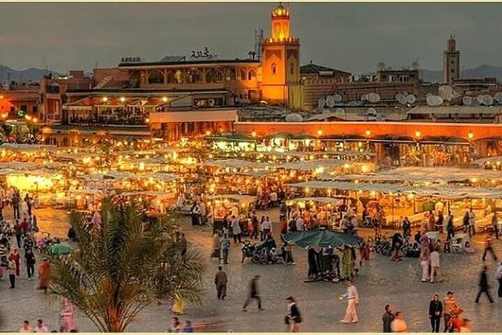 Discover the vibrant heart of Marrakech on this guided tour that takes you to the city's most iconic landmarks: Jemaa el-Fnaa, Koutoubia Mosque, Bahia Palace, and Medersa Ben Youssef. Immerse yourself in the rich history and culture of Morocco.