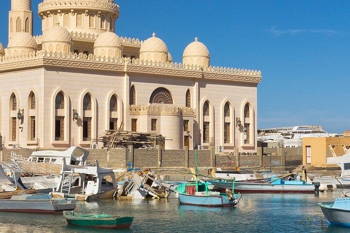 Discover the vibrant heart of Hurghada on a private city tour that combines culture, history, and local flavor — all with the ease and comfort of private transportation. Begin your journey with a visit to the Grand Al Mina Mosque, the city’s largest and oldest mosque, admired for its intricate design and spiritual atmosphere. Continue to the bustling Fish Market, where you can observe the daily life of local fishermen and experience an authentic slice of coastal Egypt.