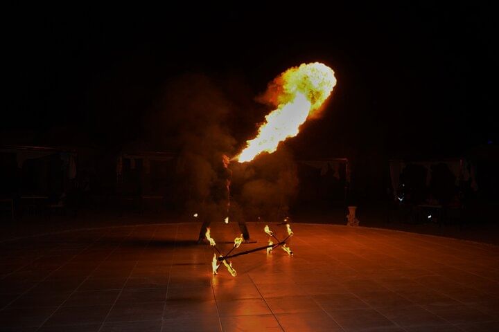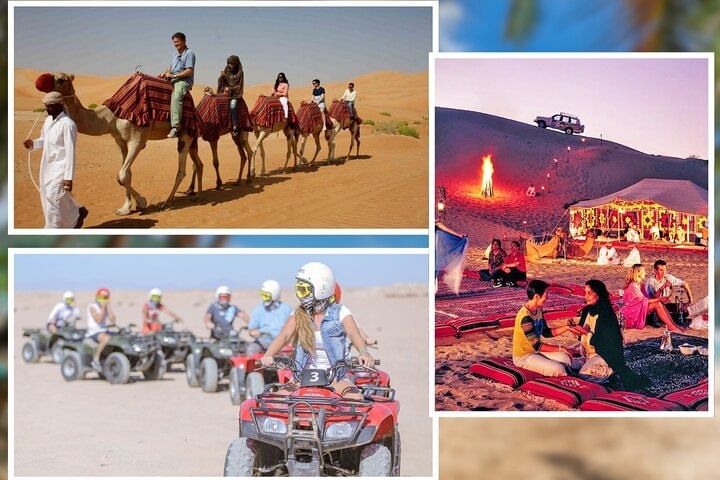 Get ready for an exciting adventure! Start your journey by revving up a powerful quad ATV and speeding across the breathtaking desert landscape, where thrilling rides and stunning scenery await. After the adrenaline-filled experience, take a serene camel ride that offers a fresh perspective on the beautiful sands. As the day comes to a close, enjoy a delicious dinner with a variety of local and international cuisine, and be captivated by a lively show of traditional music and dance. This full-day escapade combines excitement, culture, and relaxation, ensuring a memorable experience in the desert.