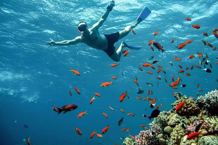 Cruise through the turquoise waters as your captain takes you to prime fishing spots. After some time casting your line, grab your snorkel gear and dive into the vibrant underwater world, surrounded by colorful corals and tropical fish.