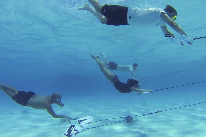Once you arrive, dive into the vibrant underwater world with a snorkeling session, exploring colorful coral reefs and swimming alongside exotic marine life. For something truly unique, try subwinging — a water sport that lets you glide beneath the surface like you're flying underwater. If you're after a rush, hold on tight for an exciting round of water skiing across the open sea.