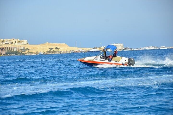 Discover the beauty of the Red Sea on an action-packed 4-hour semi-private speedboat trip from Hurghada. With comfortable transfers included, your day begins with a smooth ride to the marina