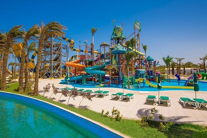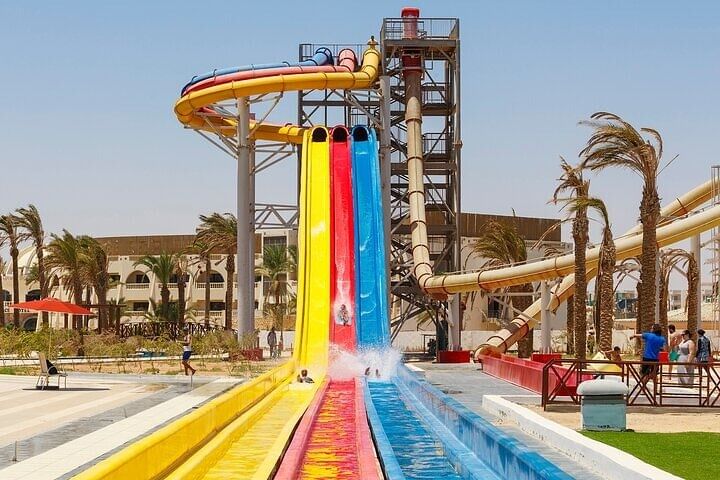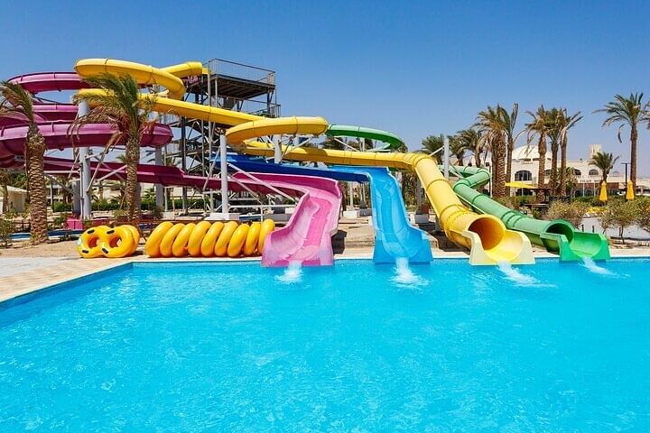 Unleash your inner child at Makadi Water World, the largest water park on the Red Sea coast, just 25 minutes from Hurghada. This full-day adventure is perfect for thrill-seekers and families alike, promising endless aquatic fun.